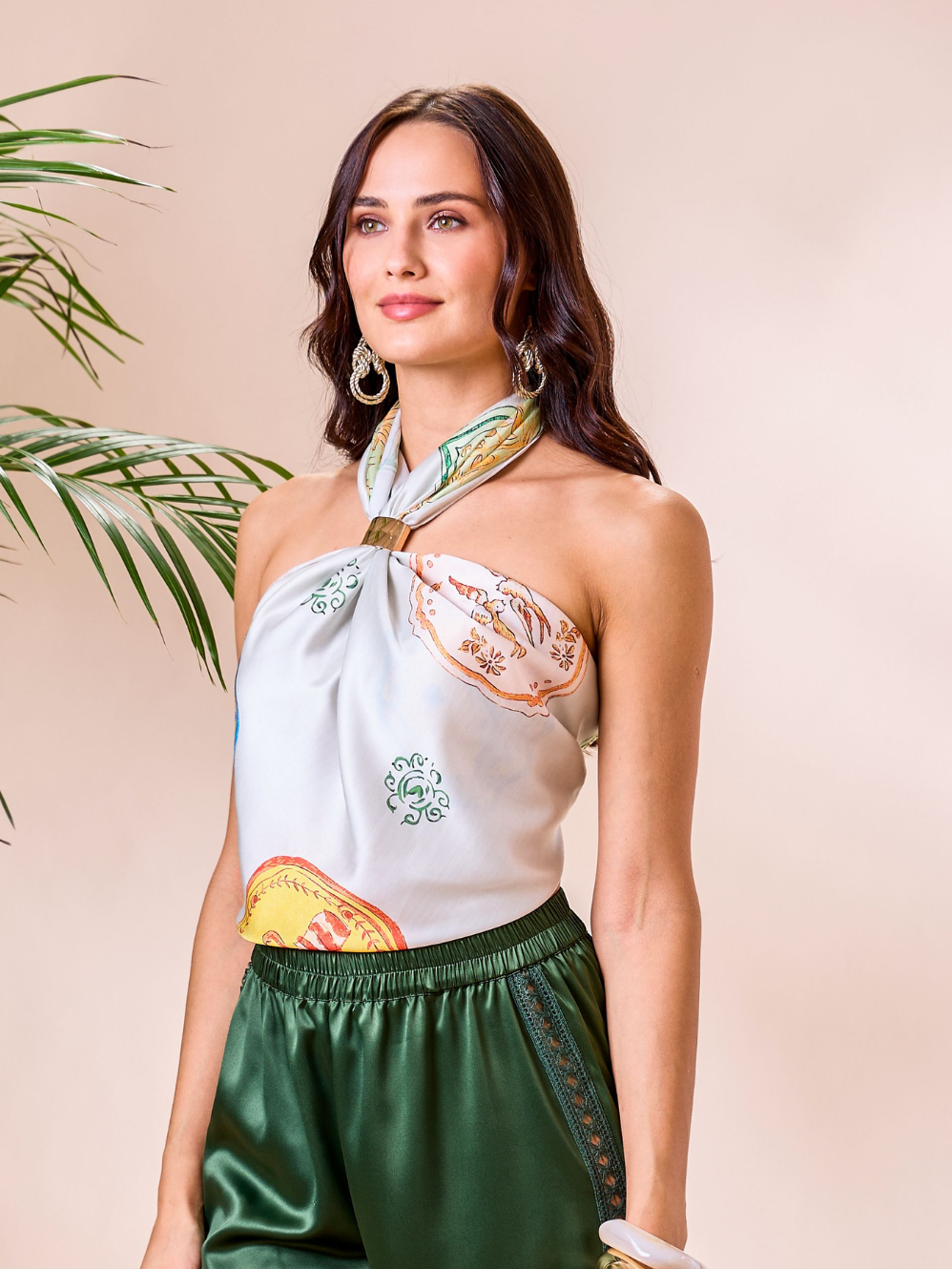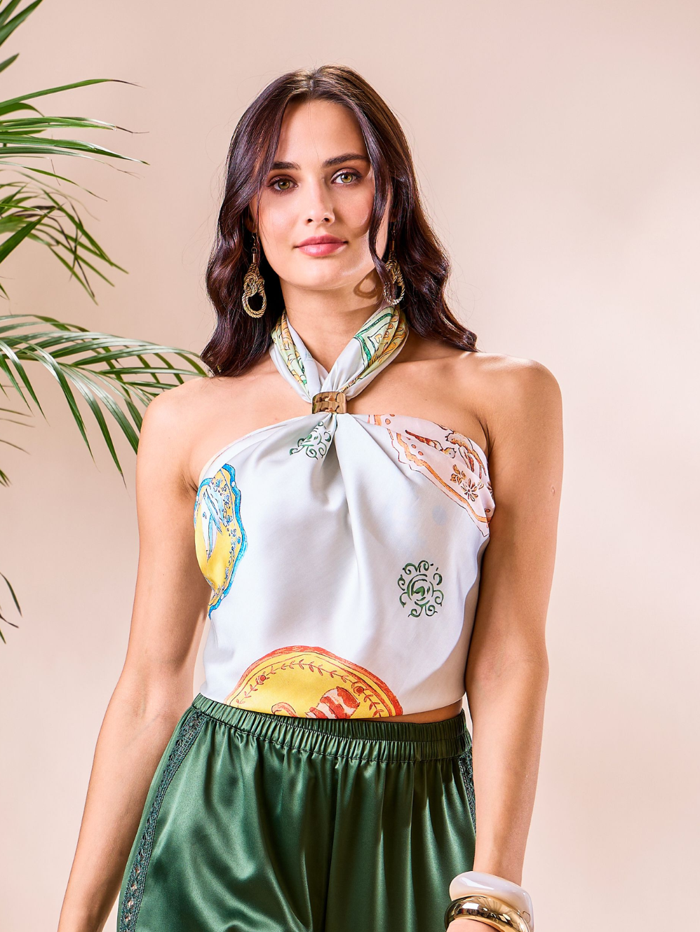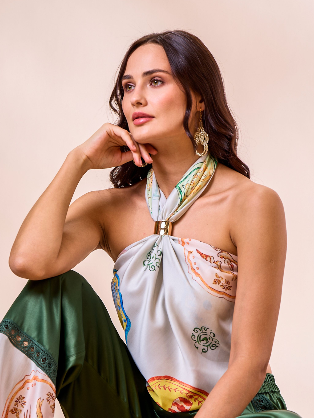 The Adella Scarf is your new beach-wear accessory. This scarf comes with a gold ring, allowing it to be styled as a halter top. Wear it as a head wrap, bandana top, or tie it aorund your neck, it's the perfect versatile piece for your summer getaway.