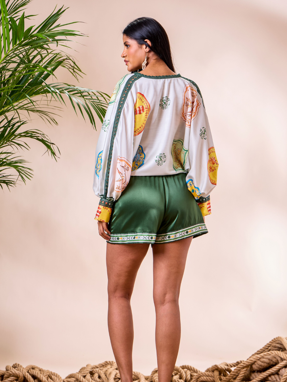 The Adella Shorts feature a relaxed, loose fit with an elasticated waist for effortless comfort, finished with a striking printed border accent. It's the perfect capsule piece for your summer wardrobe.