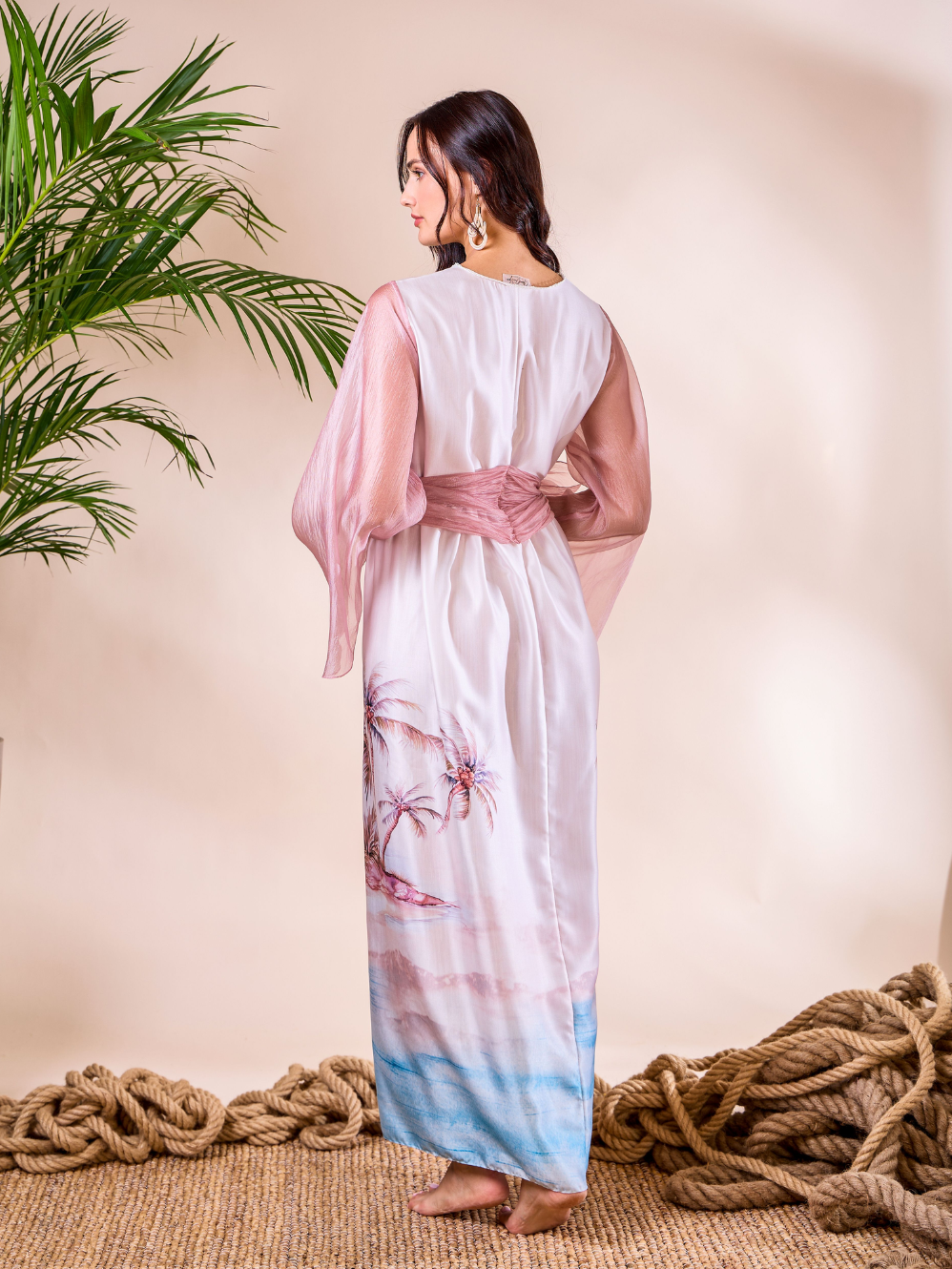 - With soft palm tree and ocean print
